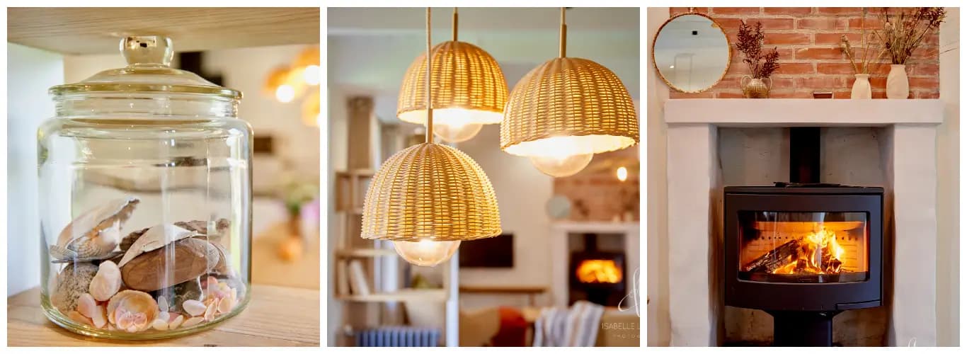 En ville, dans un quartier calme, perchée sur les hauteurs de Saint-Quay-Portrieux, cette maison de pêcheur a retrouvé sa splendeur d’antan. Ses volets gris, ses briquettes rouges, son jardin fleuri illuminent sa façade. Son allure mêle un style contemporain et actuel aux murs enduits de chaux de nos maisons de grands-mères. Dans un petit bâtiment, lumineux, entre verdure et coin lecture, s’ouvre l’entrée de la maison. Un sol en béton ciré, des couleurs douces et claires, égayé par un joli vert tilleul, confère à la maison un confort tout en douceur. Des objets chinés au cours de brocante viennent finir le décor. Une ambiance contemporaine qui a su garder l'authenticité du lieu avec ses murs de pierre.